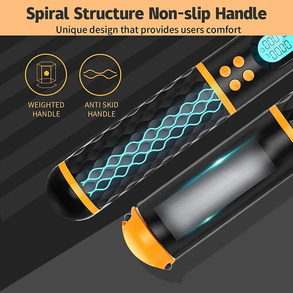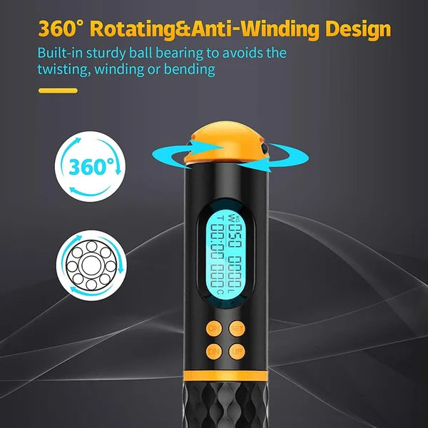 Einer der Griffe ist mit einem hintergrundbeleuchteten LCD-Display ausgestattet. das den Kalorienverbrauch. die Anzahl der Sprünge und die Trainingszeit anzeigt.